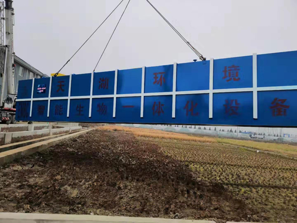 陜西榆林農(nóng)村社區(qū)生活污水處理設(shè)備吊裝現(xiàn)場